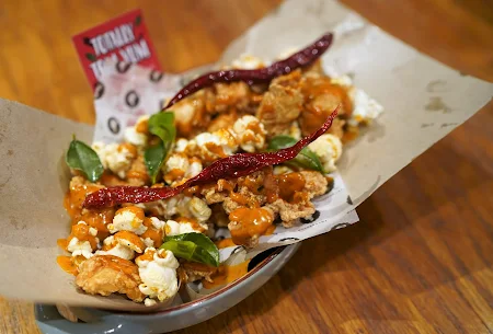 The Totally Tom Yum is one of our favourites where the chicken is perfectly deep fried till crispy and topped with the aromatic hint of light spiciness. It is simply fragrant as well. Thanks to the dried chillies, lemongrass and the kaffir lime leaf that added the umph .. in the lime popcorn.