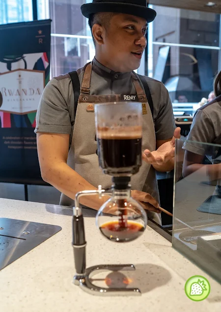 And this round, we have a sip of this Rwanda Hingakawa coffee which is one of the limited edition coffee.United by their love of coffee, the Hingakawa group within the Abakundakawa Cooperative came together to bring reconciliation and revitalization to their community and country through coffee. And the coffee brings you with the mandarin and dark chocolate flavors with a honeycomb sweetness bursts with every sip.