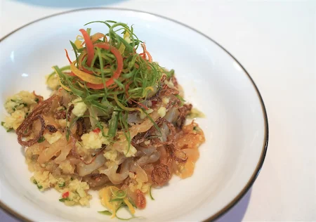 Full of collagen and this dish is impressively delicious. The pork trotter is perfectly braided and the flavours with the robust flavours. It is served together with the imported ingredients such as the Hokkaido XL Dried Scallops, Japanese Mushroom & Quill Egg.
