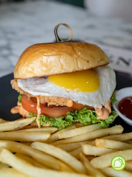 As for the Fried Chicken Burger, you will definitely enjoy the addictively delicious  Soft Brioche Buns served with the crispy Boneless Chicken Meat, Fresh Vegetables, Sunny Side egg with the homemade siracha aioli sauce. Sides with the hot and addictive french fries.