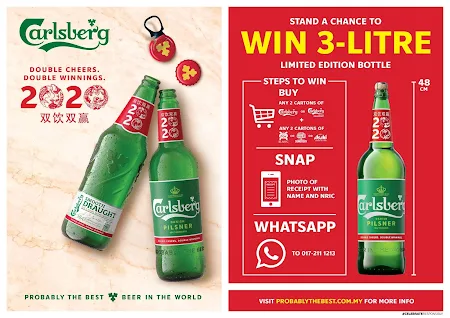 It is time to stock up your Carlsberg and you can stand a chance to win this awesome 3 litre limited edition this Chinese New Year. Probably the best beer in town offers you beautiful and yet MUST have LIMITED EDITION 3 Litre beer.