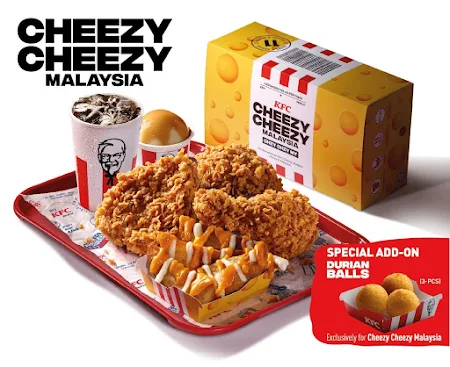 In anticipation of National and Malaysia Day, the all-new Cheezy Cheezy Malaysia combo features the iconic Cheezy Wedges with other Malaysian favourites: KFC’s Whipped Potato and KFC Original Recipe and Hot & Spicy fried chicken. Adding to the patriotic excitement, KFC is introducing Durian Balls on their menu for a limited time only. A delicious chewy texture with 100% pure premium D24 Durian filling, it is a perfect sweet addition to Malaysian favourites. Exclusive with every Cheezy Cheezy Malaysia purchase, customers can add-on 3 Durian Balls at RM3.90 only.