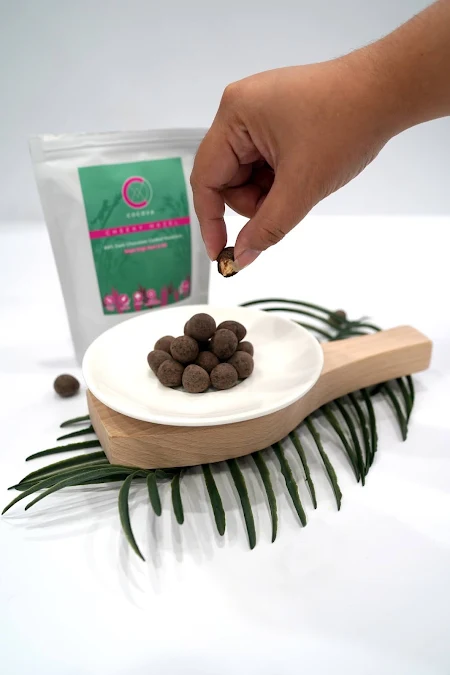 With the 65% dark chocolate button, their cacao beans are fairly sourced from Vietnam. It brings you with the fruity notes. As for me, I love to bite them just the way it is.