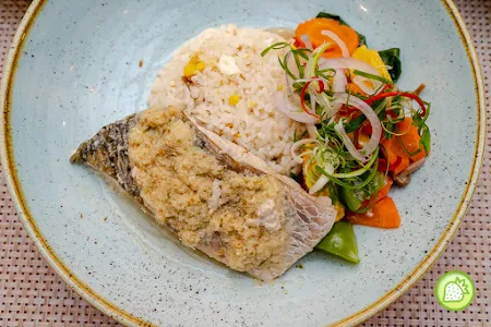 The Poached Seabass is worth the order. The portion comes simply generous and they are topped with the creamy sauce on top. It is sides with the garlic fried rice with the wok fried vegetables and sago pudding.
