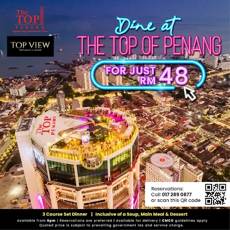 Experience a picture-postcard view of the whole of Penang from 249 meters above ground for FREE when you dine in with us.