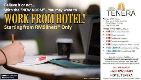 Tourism Selangor believes, a pandemic shall not hinder you from doing what you are passionate of. Home may not be convenient as there might be a lot of distractions and to some, the same repetitive work environment is not exciting enough. With the work-from-hotel packages offered in the State of Selangor, it is time to improve your work productivity and get things done amidst comfort and quality service hospitality. And if you get side-tracked with the work, why not indulge further in the comfort and spend the night at the hotel with discounted price! However, let us all not neglect to adhere to the standard operating procedure (SOPs) set by the Government to prevent the Covid-19 infection in the community. Stay safe, and let’s get productive in style!
