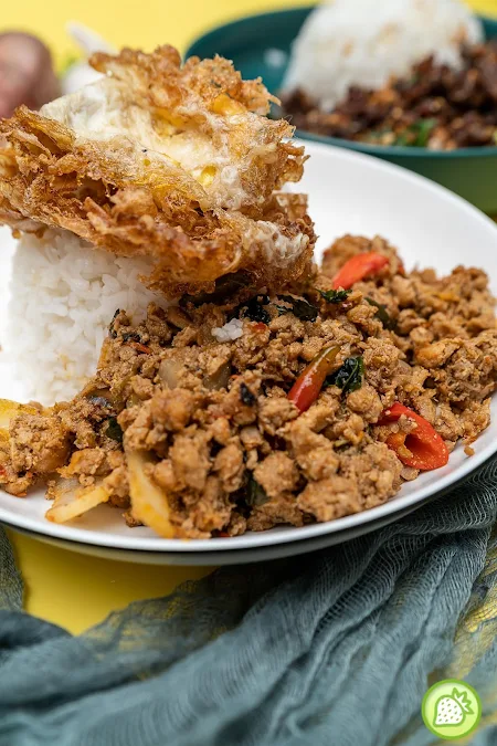 The Krawpow Chicken Rice is one of the must to try here. With the wholesome dish that brings you with the kick of spiciness in it. The chicken is perfectly diced and then stir fried together with the fish sauce and other condiments. They are then added with basil bringing you the aromatic touch of it. Topped with the deep fried Thai Egg which is superb.