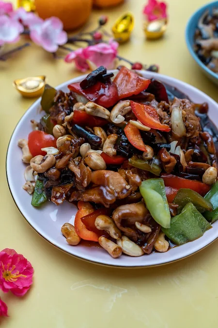 Wok-fried chicken with dried chillies and Szechuan peppercorn (公宝花椒鳮球)