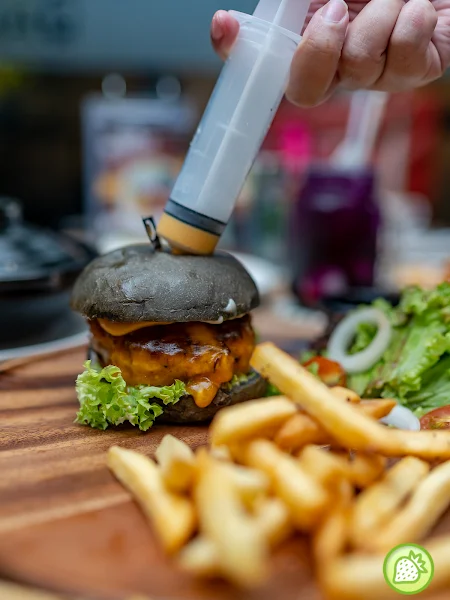 After the delighting sides, we move on to our main where we try their Signature Cheeseburger which comes with the choice of chicken (RM 18.20), Pork ( RM19.20) or Lamb (RM 21.80). The pork cheese bureger comes superbly good where the daddy’s cheese is infused patty with the cheese slice between the charcoal bun injecting cheese sauce served along with coleslaw and fries.