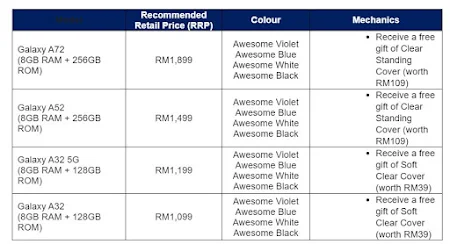 These well rounded, premium but affordable smartphones will be made available from 26 March 2021 onwards – consumers can purchase the Galaxy A72 at RRP RM1,899; Galaxy A52 at RRP RM1,499; Galaxy A32 5G at RRP RM1,199; and Galaxy A32 at RRP RM1,099.