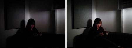 Comparison of photo shot with default camera settings (left), and with Night Mode (right)