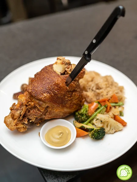 In here, one must have is their Giant Pork Knuckle. The pork knuckle which is cooked for 3 hours and then being deep fried till perfection. They are then served with the black pepper sauce, baby potatoes, bacon sauerkraut, and grilled vegetables.