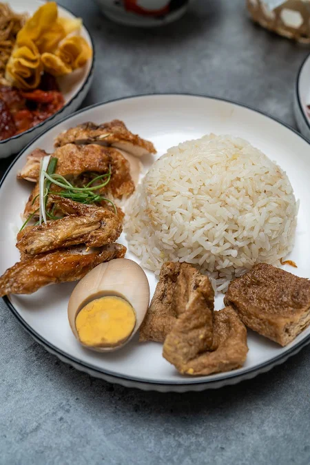 The Nasi Ayam Canton is such a divinely dish which is not to be missed. The fragrant nasi ayam which is made from scratch is so fragrant and they are served together with the roasted chicken on top and sides with the chili sauce and a side dish.