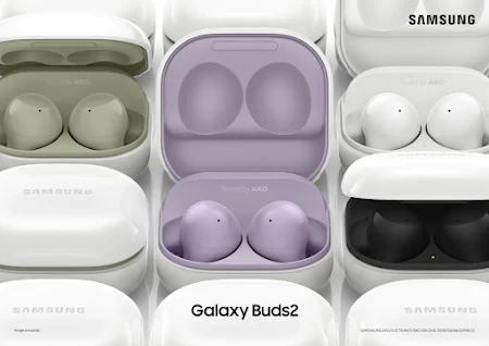 Galaxy Buds2 are Samsung’s smallest and lightest earbuds yet boasting an iconic curved shape. For a more perfect fit, we’ve developed the ‘Earbud fit test’ in Galaxy Wearable app. Choose from four contemporary colors  —Graphite, White, Olive and Lavender—to show off your personal style, and complete the package with third-party accessory cases .