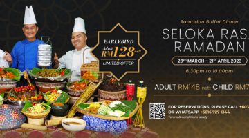 Hotel Armada Petaling Jaya is back with its Ramadan buffet themed "Seloka Rasa Ramadan" for this year's Ramadan month. Various types of breaking fast dishes will be served. Don't miss the opportunity to get the "Early Bird" buffet promotion starting from February 13th to March 10th, 2023. ‼️EARLY BIRD PRICE RM128 Nett (Adult) ‼️NORMAL PRICE RM148 Nett (Adult) RM74 Nett … [Read more...] about Seloka Rasa Ramadan @ Armada Hotel Petaling Jaya