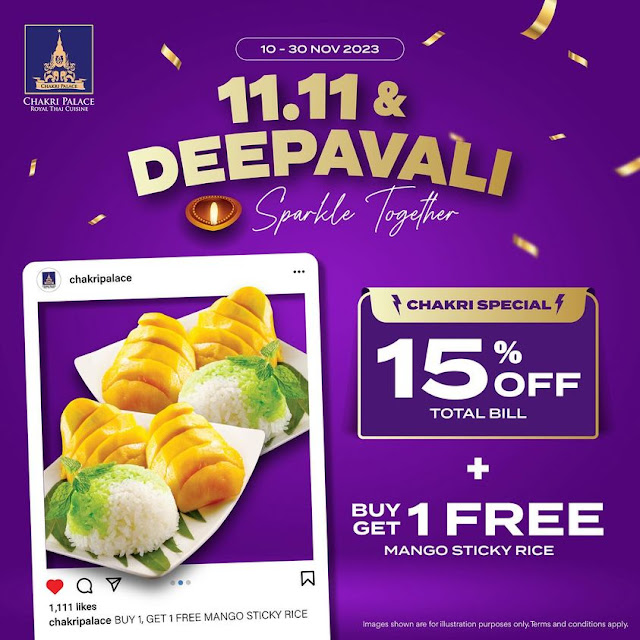 Get ready to spice up November! 🌟 1 more day until the ultimate 11.11 + Deepavali bash at Chakri! 🔥 Enjoy 15% off for a flavor-packed Thai feast! 🍛 And guess what? It's Buy 1 Free 1 on our must-have Mango Sticky Rice! 😋 Grab your crew and let's dig in! 🎉🥭 Make your bookings and contact: ☎ 016-227 7110 📍 Lot 417B, Level 4, Ramlee Mall Suria KLCC, … [Read more...] about 11.11 & Deepavali Sparkle Together @ Chakri Palace
