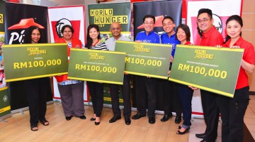 KFC and Pizza Hut Malaysia recently presented RM400,000.00 to four local NGOs as part of their World Hunger Relief (WHR) Distribution Programme plans to tie up with local hunger relief agencies. Persatuan Kebajikan HOPE Worldwide Kuala Lumpur, Pertiwi Soup Kitchen, Kechara Soup Kitchen Society, and the Malaysia Red Crescent (MRC) Community Services - JB were among the NGOs … [Read more...] about KFC AND PIZZA HUT’S WORLD HUNGER RELIEF DISTRIBUTION PROGRAMME COLLABORATES WITH LOCAL NGOs TO HELP THE LESS FORTUNATE
