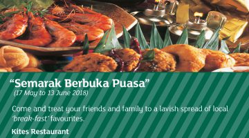 Share the spirit of togetherness with family and friends at Dorsett Putrajaya. Be sure to follow the alluring aroma of tantalising traditional delights and savour over 500 authentic dishes, lavish Durian Buffet and succulent Barbecue Venison. A great feast that you will not want to be missed this year! Available from 18 May - 13 June 2018. RM138 nett per adult RM78 … [Read more...] about Berbuka Puasa @ Dorsett Hotel Putrajaya