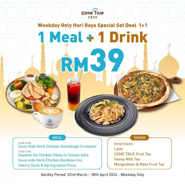 Right here at 【Come True Cafe】 📣only RM39📣 ⏰Limited-time Raya Set ✏️Weekdays Only Ramadan special set menu Available ALL DAY!! Indulge in delicious food alone😋 Perfect romantic date for two👩❤️👨🧕🏻👳♂️ great choice for family gatherings.👩👧👨👩👦👦👨👦 🚗 No traffic jams! 🚙 😉Enjoy your meal, fill your stomach, after that Safe journey home.🏠 ✈️ Let’s ~ … [Read more...] about Weekly Raya Special Set @ Come True Cafe