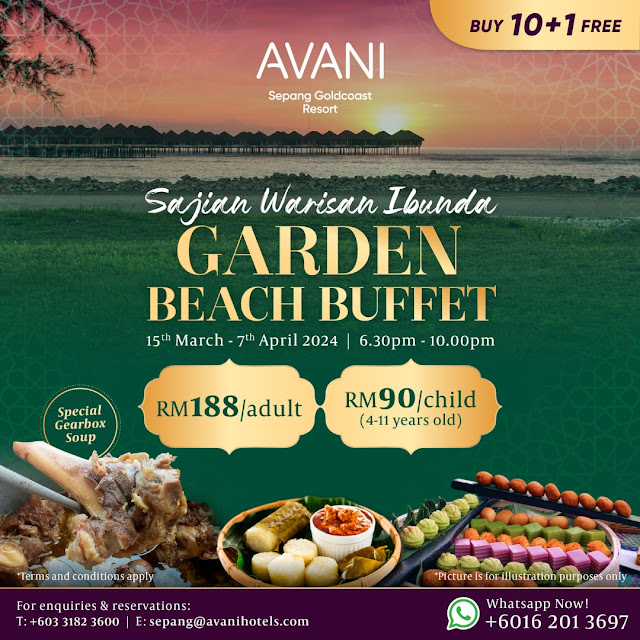 Experience 𝗜𝗯𝘂𝗻𝗱𝗮'𝘀 kitchen by the beach with our 𝗦𝗮𝗷𝗶𝗮𝗻 𝗪𝗮𝗿𝗶𝘀𝗮𝗻 𝗜𝗯𝘂𝗻𝗱𝗮 𝗕𝘂𝗳𝗳𝗲𝘁. Enjoy local culinary treasures passed down through generations, featuring dishes from community mothers and our culinary team's heritage recipes. With 13 stalls offering a variety of beloved local favorites, come berbuka by the sea and relish the comfort of home-cooked meals. 𝗦𝗮𝗷𝗶𝗮𝗻 𝗪𝗮𝗿𝗶𝘀𝗮𝗻 … [Read more...] about Sajian Warisan Ibunda at Avani Sepang Goldcoast Resort