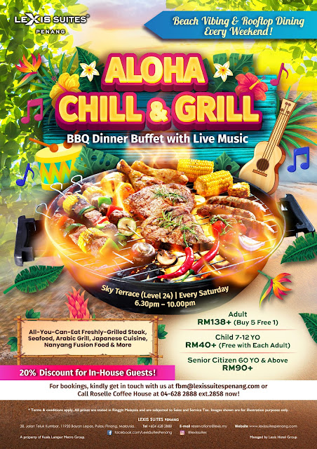 Chill out with some 5-star 🌟 rooftop dining at Lexis Suites Penang with our “Aloha Grill & Chill” Barbecue Dinner Buffet! 🍽️ Immerse yourself in the ocean view 🌊 and summer 🏖️ beach vibes of our Sky Terrace. Watch the sun set 🌅 and enjoy live music 🎶 while savouring succulent steaks to mouthwatering seafood, and other grilled specialties expertly prepared by our … [Read more...] about Rooftop Dining at Lexis Suites Penang-Aloha Grill & Chill BBQ Dinner