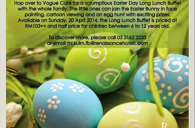 Easter Sunday is on 20 April. If you have not make any plans for the family yet, do check out the Vogue Cafe, Renaissance KL for a long lunch with families at RM 103++ and children are half price. … [Read more...] about EASTER PROMOTION AT VOGUE CAFE, RENAISSANCE HOTEL KL
