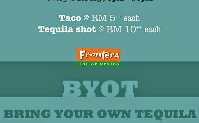 It's Taco Tuesday at Frontera Sol Of Mexico tonight! Taco at RM5++ Tequila shot at RM10++ Margarita* at RM10++ *BYOT (Bring you own tequila). Please call 0379588515 to book a table. … [Read more...] about TACO TUESDAY AT FRONTERA SOL OF MEXICO
