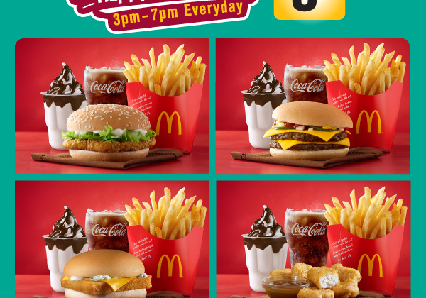 Happy days are here with McDelivery Happy Hour Menu from 3pm-7pm EVERYDAY! For only RM9.95 each, choose from McChicken, Double Cheeseburger, Filet-O-Fish or 6 pcs Chicken McNuggets and complete your meal with your choice of dessert: Sundae OR Apple Pie. Wherever you may be, enjoy great meals at supervalue prices delivered right to your doorstep! Call 1300-13-1300 now … [Read more...] about HAPPY HOUR WITH MCDONALDS