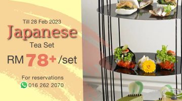 An indulging tea set with delicious Japanese flavors. Simply to enjoy with friends and family From RM78+ per set Available till 28 February 2023 SET INCLUDES - California Rolls with Condiments - Man Tau with Jellyfish and Cucumber Salad - Japanese marinated Saba Ceviche on Potato Chips - Tako Yaki Skewer - Green Tea Cheese Cake - Sour Plum Jelly - Japanese … [Read more...] about Japanese Tea Set @ Eastin Hotel PJ