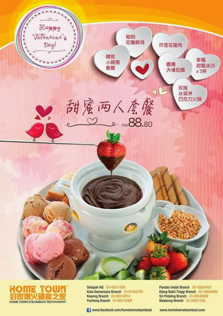 Location: Setapak HQ 126-0-04, Sri Pelangi Condominiums, Jalan Genting Kelang, 53300 Setapak, Kuala Lumpur. (03-40311930) Kota Damansara Branch 23-1, Jalan PJU 5/9, Dataran Sunway, Kota Damansara, 47810 Petaling Jaya, Selangor. (03-61450785) Kepong Branch 71, Jalan 11/62A, Bandar Menjalara, Kepong, 52200 Kuala Lumpur. (03-62610074) Puchong … [Read more...] about VALENTINE DAY PROMO AT HOMETOWN STEAMBOAT