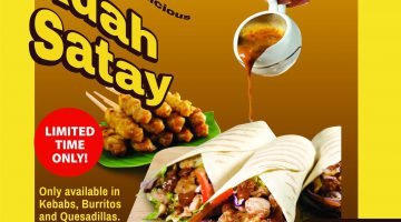 Hola Stuffers! The long-awaited launch of seasonal sauce is finally here. Introducing the Sweet-licious Kuaaaaah Satayyyyy that goes perfectly with Stuff’d signature grilled chicken, for a limited time only. P.S. Only applicable to Kebabs, Burritos & Quesadillas. P.P.S. The sauce contains peanuts. … [Read more...] about Kuah Satay with Stuff’d