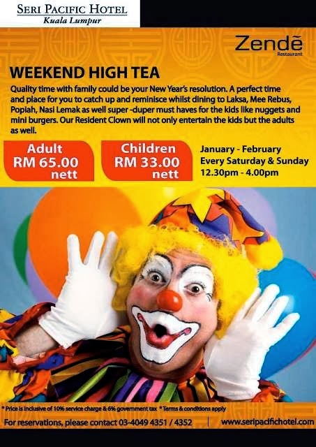 Quality time with your family could be your New Year's resolution. A perfect time and place for you to catch up and reminisce whilst dining to Laksa, Mee Rebus, Popiah, Nasi Lemak as well super-duper must haves for the kids like nuggets and mini burgers. Zende's Resident Clown will not only entertain the kids but the adults as well. Date: Until 28th Feb 2014 Day: Saturday … [Read more...] about WEEKEND HI TEA AT ZENDE