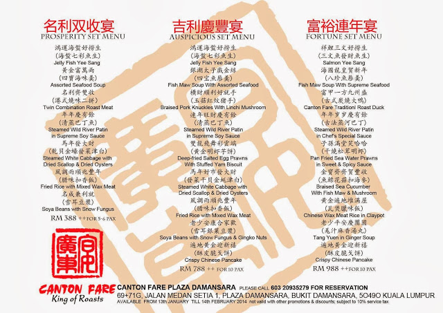 CANTON FARE Chinese New Year Set Menu is out! Available from 13th Jan till 14th Feb, we have limited small tables (2-6 paxs) left for CNY eve, all our big tables are taken. Do call us for reservation at 603-20935279. Location Canton Fare, 71G, Jalan Medan Setia 1,Plaza Damansara, Bukit Damansara., Kuala Lumpur, Malaysia Phone 03-2093 … [Read more...] about SET MENU AT CANTON FARE PLAZA DAMANSARA