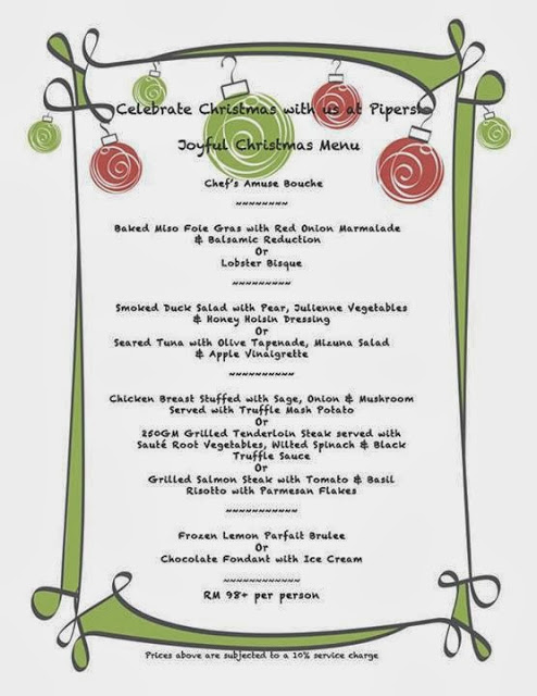 Address: Pipers B3-06, The Fare, 10 Mont' Kiara, Jalan Kiara 1 50480 Kuala Lumpur, Malaysia Phone 03-6211 5100 … [Read more...] about CHRISTMAS PROMOTION AT PIPERS