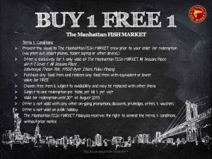 THE MANHATTAN FISH MARKET BUY 1 FREE 1 PROMOTION AT ALL SEASONS PLACE ONLY