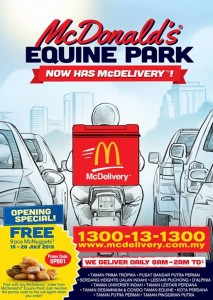 McDonald’s Equine Park Free 9pcs McNuggets McDonald’s Equine Park Now has McDelivery Get 9pcs McNuggets FREE with ANY McDelivery order from Equine Park between 15 – 28 July 2013 Just call 1300-13-1300 and mention promo code OP001 today Terms and Conditions Free with McDelivery order from McDonald’s Equine Park Just mentioned the promo code to the call agent when … [Read more...] about MCDONALD’S EQUIDE PARK FREE 9 PCS NUGGET
