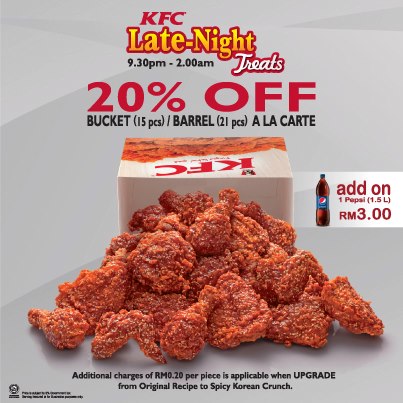 Get 20% off on our KFC Bucket or Barrel Ala Carte with the new KFC Late Night Treats! Terms and conditions, click here http://on.fb.me/YNcUlJ. … [Read more...] about KFC LATE NIGHT TREATS