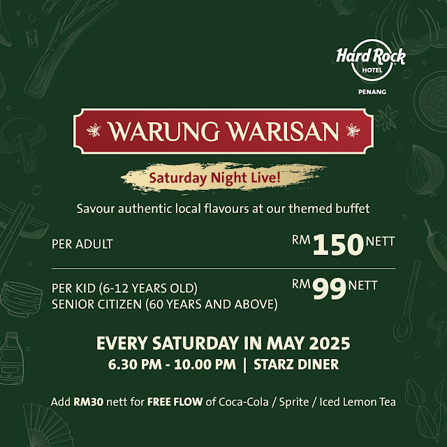 Flavours that feel like home, vibes that hit just right 🍽️ Our themed buffet is back, packed with local faves, bold spices and sweet endings. 🥤 Thirsty? Add RM30 nett for bottomless sips of Coke, Sprite and Iced Lemon Tea. Unlimited refills, unlimited chill. 😎 Bring your appetite, we’ll bring the feast. Let’s eat! Warung Warisan: https://bit.ly/ww-snl Location : … [Read more...] about Warung Warisan @ Hard Rock Hotel Penang
