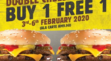 Double the Double! Get 2 Double Cheeseburger at the price of one! Promotion valid from 3rd Feb - 6th Feb. While stocks last! T&C Apply. #BurgerKingMY … [Read more...] about Buy 1 Free 1 @ Burger King