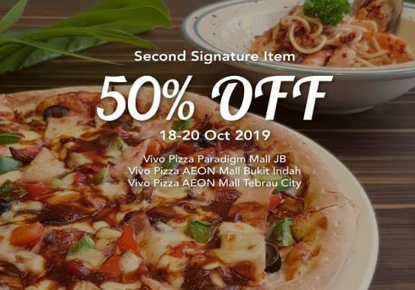 ⭐️ 5 0 % O F F - Second Signature Item ⭐️ Happy Weekend Vivo Fans! Enjoy 50% off on the second signature item from 18 - 20 October 2019. Jom your friends and family to enjoy these special treats! See ya! Only available at: Vivo Pizza Paradigm Mall JB Vivo Pizza AEON Mall Bukit Indah Vivo Pizza AEON Mall Tebrau City Terms and conditions apply. … [Read more...] about 5 0 % O F F – Second Signature Item at Vivo Pizza