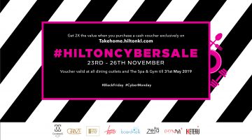 Hilton Kuala Lumpur, Malaysia’s upper upscale 5-star hotel is introducing its very first #HiltonCyberSale in conjunction with the upcoming Black Friday and Cyber Monday, the most anticipated online shopping days throughout the year. Taking place for four days from 23rd November until 26th November 2018 on Hilton Kuala Lumpur’s E-Commerce platform … [Read more...] about Hilton Kuala Lumpur Introduces #HiltonCyberSale this November
