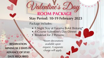 Pamper your loved one with a suteki Valentine's Day stay and dine experience from RM450 nett* ❤️ Package includes: ✅ 1-night stay at Furama Bukit Bintang, Kuala Lumpur (Stay period: 10–19 February 2023)** ✅ 4-course Valentine's Day dinner for 2 ✅ Breakfast for 2 *Room decoration service is available upon request (Separate charges apply). **Room package … [Read more...] about Valentine’s Day Room Package @ Furama Hotel