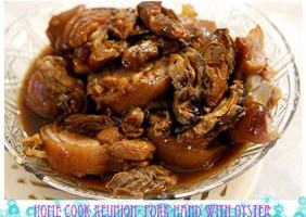 One of the famous dish from Penang, mum usually prepared this during Chinese New Year. This is one of the grand –mother’s recipes which is inherited by the family Ingredients 1. 1 whole pig leg 2. 250 grams of Dried Oyster (if you love more you can have them more) 3.1 packet (50g) Black Moss (Fatt Choy) 4. Pinch of black pepper 5. Light Soy Sauce 5. Dark Soy … [Read more...] about Home Cook Pork Knuckle with Oyster