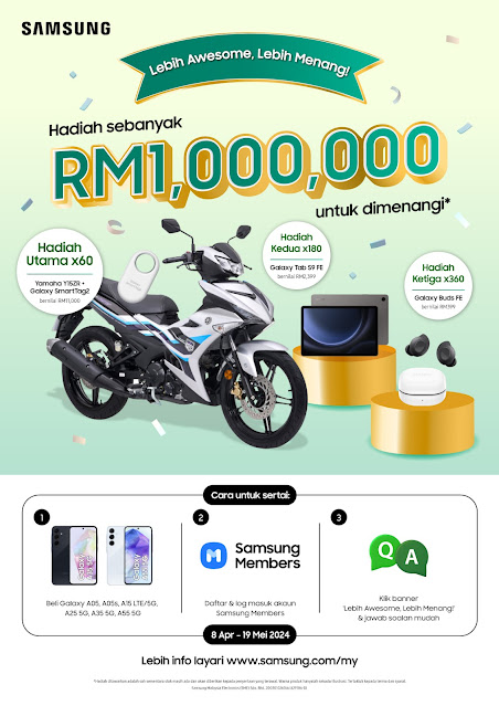 Get ready to seize the ultimate Raya season experience! From now until 19th May, Samsung Malaysia is giving you the opportunity to make your Raya celebrations more Awesome with the "Lebih Awesome, Lebih Menang!" A-series Giveaway Contest , offering prizes worth up to RM 1,000,000 ! Imagine yourself zooming into your Raya visits in style on the new Yamaha Y15ZR motorcycles ! … [Read more...] about Win Prizes Worth A Million: Enter ‘Lebih Awesome, Lebih Menang!’ Giveaway Contest with Samsung Galaxy A55 and A35 5G!