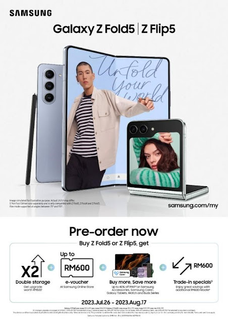 We know you can’t wait to own the latest Galaxy innovations, so get ready to pre-order them all from 26 July - 17 August 2023. Get your hands on the Galaxy Z Fold5 from RM6,799, Galaxy Z Flip5 from RM4,499, Galaxy Watch6 Classic from RM1,399, Galaxy Watch6 from RM1,099, Galaxy Tab S9 Ultra from RM6,499, Galaxy Tab S9 Plus from RM5,199, and Galaxy Tab S9 from … [Read more...] about Pre-Order Your Galaxy Z Fold5 | Galaxy Z Flip5, Galaxy Watch6 & Galaxy Tab S9 Series Today