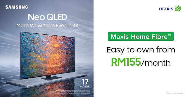 Samsung Malaysia Electronics introduces its new campaign with Maxis that entitles new Maxis Home Fibre users to own Samsung Neo QLED 4K from RM155 a month with zero upfront payment. This enables Samsung customer to secure the promotion when they sign up with a Maxis Home Fibre plan. Recently launched Samsung Neo QLED 4K is packed with Quantum Matrix Technology … [Read more...] about Easy to Own the New Samsung Neo QLED 4K from RM155 a Month with Maxis Home Fibre Plan