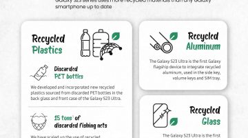 With its new, cutting-edge design, the Galaxy S23 series demonstrates that innovation brings both high-performance and sustainability for the ultimate premium experience. The Galaxy S23 series raises the bar for both quality and aesthetics with less environmental impact than previous generations. To achieve this, we incorporated recycled materials in more device … [Read more...] about Galaxy S23 Series: Designed With the Planet in Mind