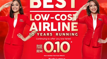 To celebrate their 10th consecutive Skytrax World’s Best Low-Cost Airline win, AirAsia are offering special promotional fares from as low as RM0.10 to various destinations in their network. AirAsia BIG members can enjoy base fares from as low as RM0.10* from Kuala Lumpur to Johor Bahru, Penang, Kota Bharu, Kuala Terengganu, Siem Reap, Phnom Phenh, Krabi, Phuket and … [Read more...] about Celebrating 10 years of world’s best with fares from RM 0.10