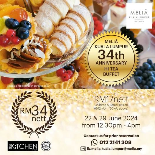 Celebrate Meliá Kuala Lumpur's 34th Anniversary with a delightful Hi-Tea Buffet! Dates: 22nd & 29th June 2024 Time: 12.30pm - 4.00pm Price: RM34 nett per adult RM17 nett per child (6-12 years old) & senior citizen (60 years old & above) Indulge in a delectable spread of local and international favorites, alongside exquisite pastries and refreshing … [Read more...] about Celebrate Meliá Kuala Lumpur’s 34th Anniversary with a delightful Hi-Tea Buffet!