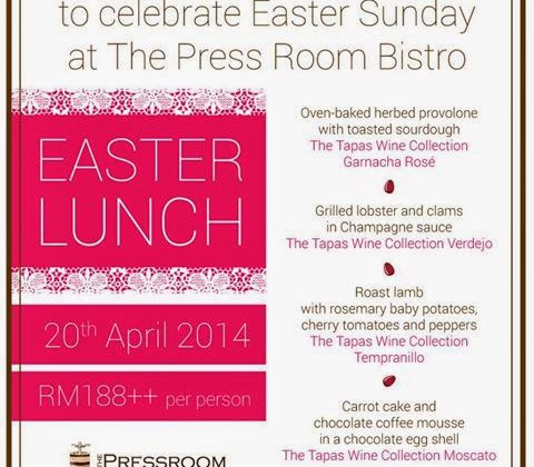 The Pressroom Bistro is offering their Easter Lunch at RM188++ per person. Visit their Facebook page for menu. Call 03-2148 3889 for reservations. Available at: The Pressroom Bistro - Pavilion Kuala Lumpur … [Read more...] about EASTER LUNCH PROMOTION AT THE PRESSROOM BISTRO